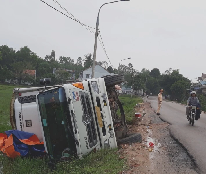 Mới đây, ngày 9-11, trên đoạn đường này có một xe tải chở mít đã bị lật xuống ruộng.