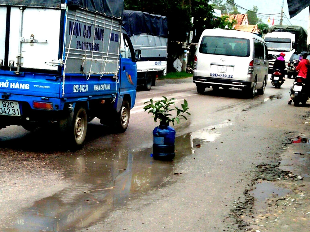 Ghi nhận cho thấy chỉ gần 5 km từ Tam Kỳ lên đến trạm thu phí nhưng có đến hàng trăm ổ gà, ổ voi chằng chịt trên đường.