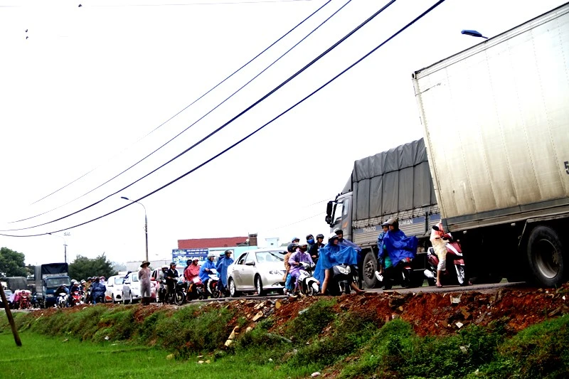 Kẹt xe liên tục trên quốc lộ 40B khi cao tốc đưa vào sử dụng.