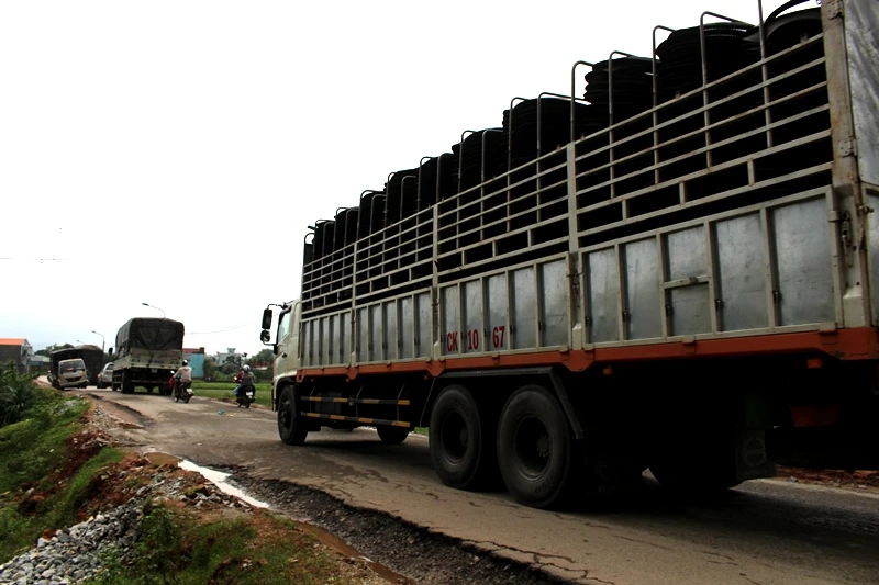 Xe có trọng tải lớn thi nhau lưu thông khiến đường nát bươm.
