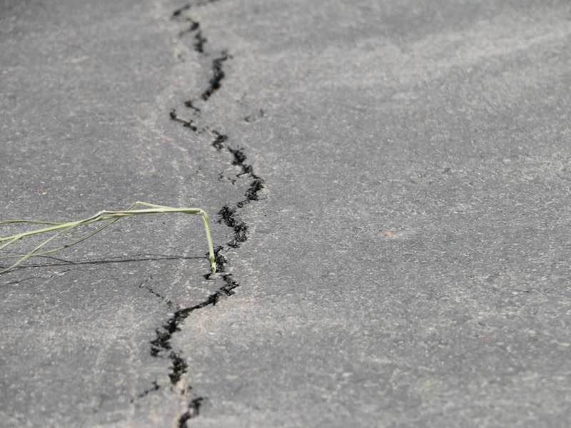 Vết nứt có chiều dài khoảng 20 m, nằm ở vị trí 1/3 mặt lộ. Ảnh: HD