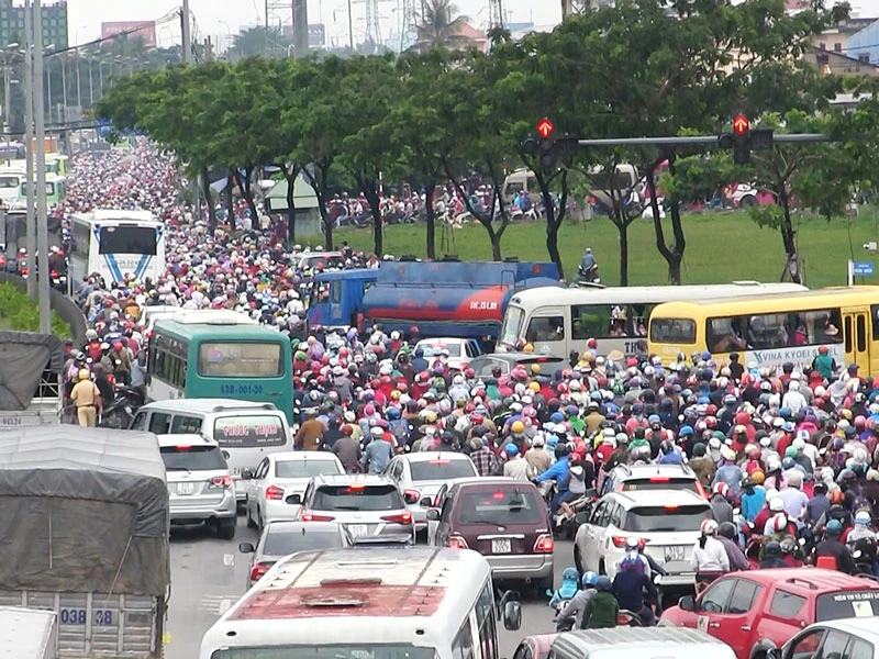 Mặc dù lực lượng chức năng tổ chức phân luồng, đảm bảo giao thông tuy nhiên không thể giảm bớt lưu lượng phương tiện.