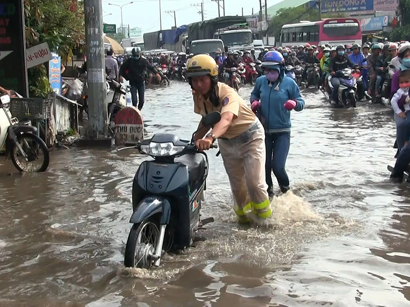 Nguyên nhân một phần do trận mưa khiến 1uốc lộ 1A đoạn qua xã Tân Kiên, huyện Bình Chánh bị ngập, gây kẹt xe.