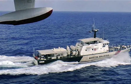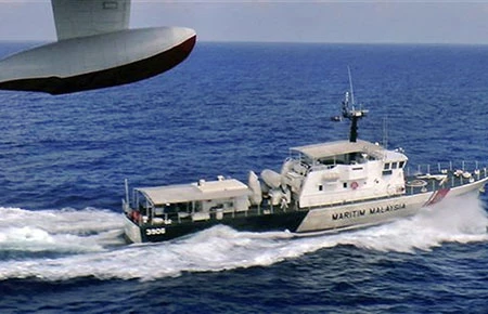 Tàu tuần tra Malaysia tìm kiếm máy bay mất tích ngày 9-3. Ảnh: AP