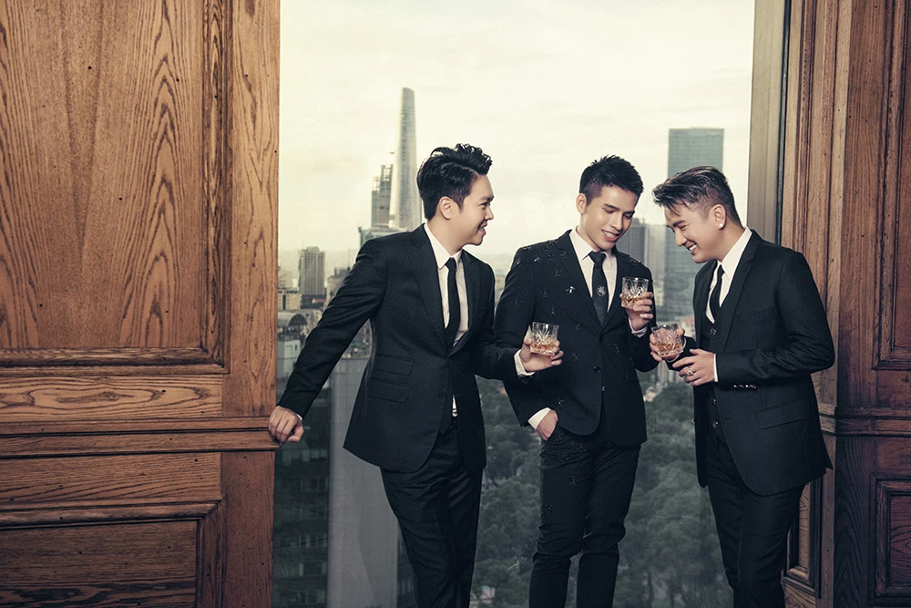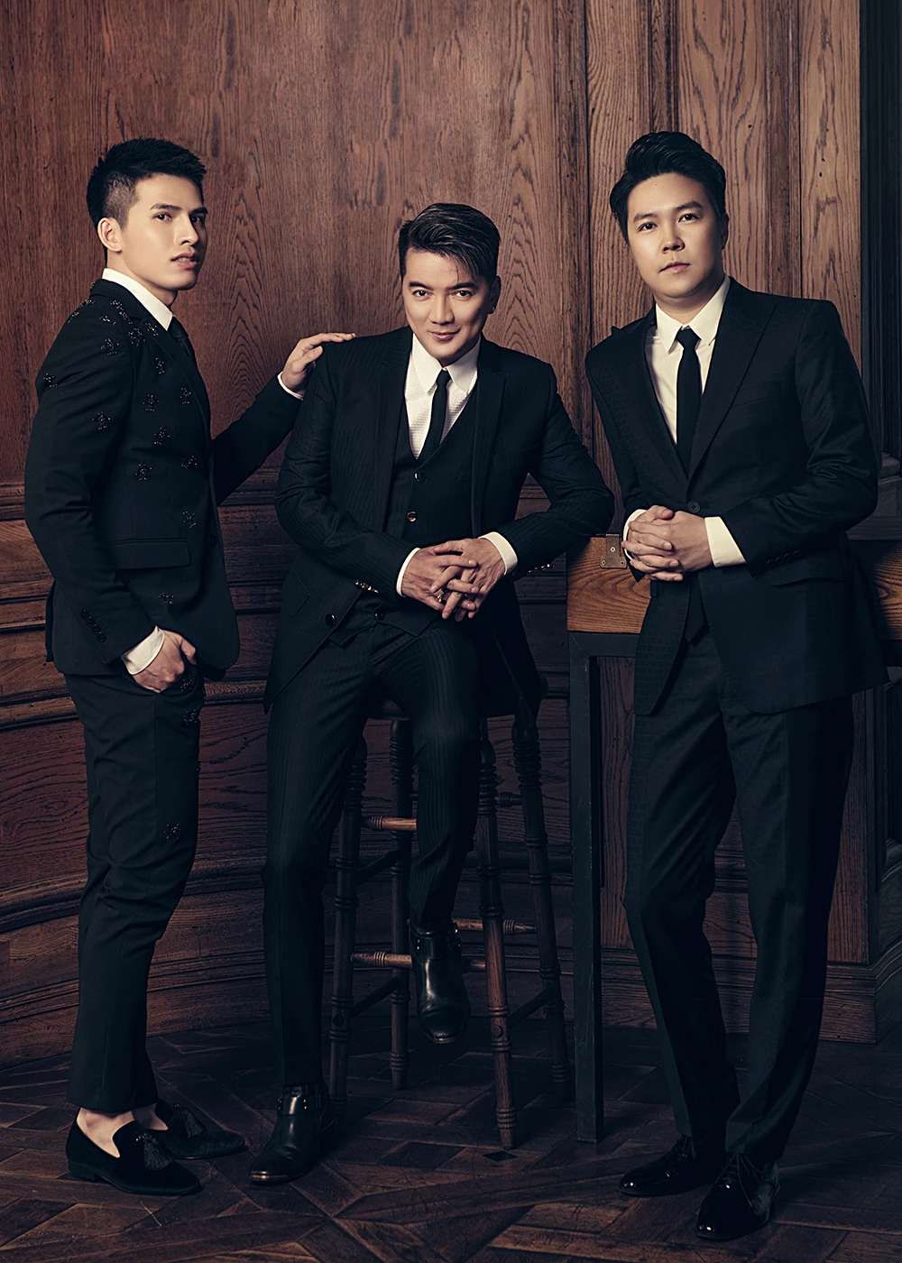 Đặc biệt, trong bộ ảnh mới nhất, nam ca sĩ điển trai còn đọ vẻ nam tính với hai ca sĩ góp mặt trong dự án Tuyệt phẩm song ca là Đàm Vĩnh Hưng và Lê Hiếu.