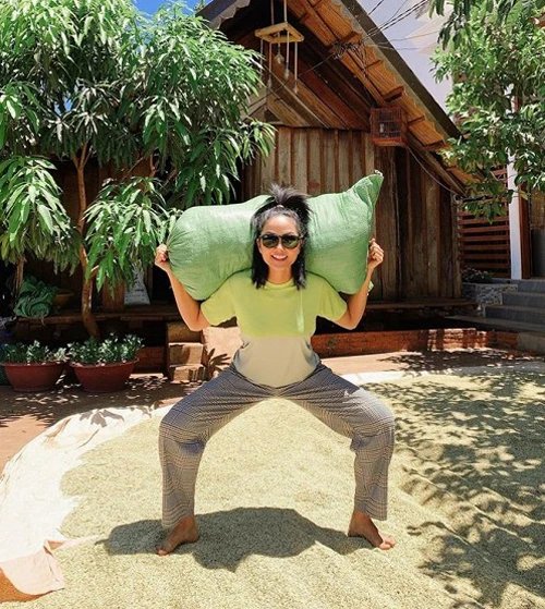 H'Hen Niê trổ tài lực sĩ bê bao thóc.