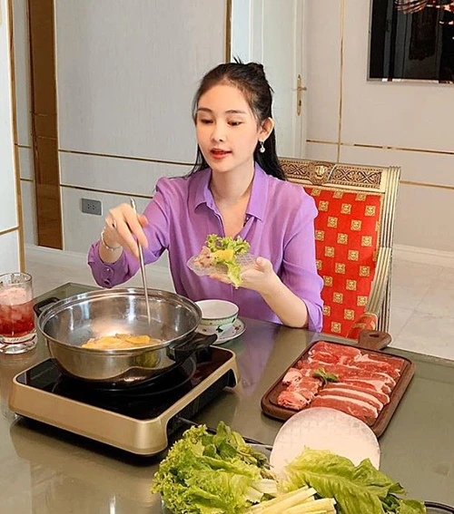 Hoa hậu đại dương còn tự làm lẩu bò nhúng dấm tại gia.