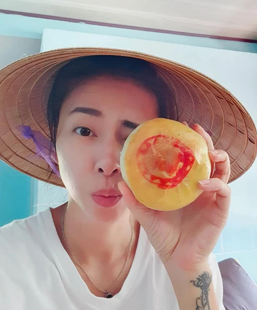 Ngô Thanh Vân về quê tự làm bánh pía.
