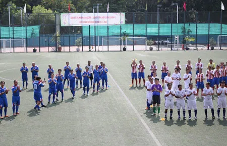 Các cầu thủ tham gia giải đấu xếp thành số 72 mừng sinh nhật thứ 72 của cựu danh thủ Tam Lang. Ảnh: XUÂN HUY