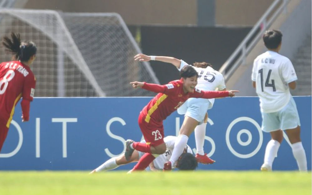 VN trải qua nhiều thời điểm kịch tính khi Su Yu Hsuan san bằng 1-1 cho Đài Loan phút 50. Ảnh: AFC