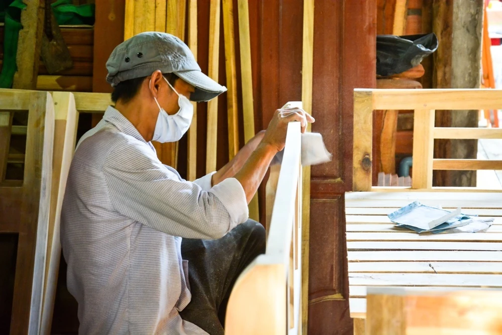 Công nhân tại xưởng mộc đang hoàn thiện sản phẩm để giao khách hàng.