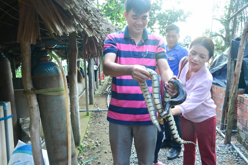 Ngoài cá nước ngọt, Khánh còn nuôi ếch, rắn Ri Voi, lươn…