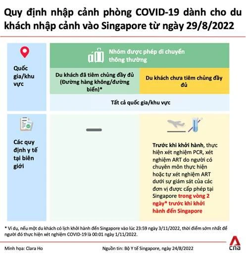 Theo Bộ Y tế Singapore, trước tình hình dịch bệnh COVID-19 đã được cải thiện tại đảo quốc và toàn thế giới, các đối tượng nói trên sẽ không phải cách ly bảy ngày sau khi nhập cảnh hay cần xét nghiệm phản ứng chuỗi polymerase trước khi kết thúc giai đoạn cách ly.