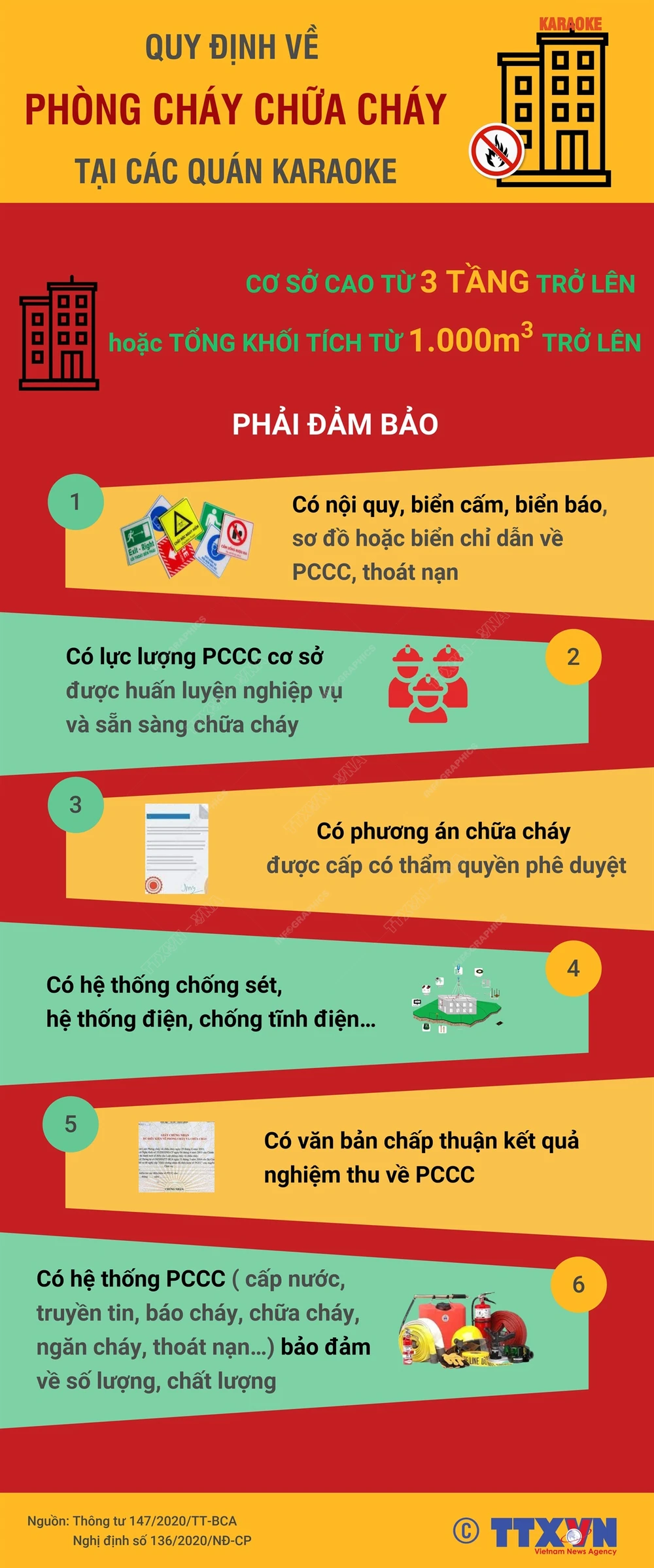 (PLO)- Một trong các điều kiện để kinh doanh dịch vụ karaoke là phải bảo đảm điều kiện về phòng, chống cháy nổ. Thông tư 147/2020 của Bộ Công an đã quy định rõ về biện pháp đảm bảo an toàn phòng cháy chữa cháy và cứu nạn cứu hộ với loại hình kinh doanh này .
