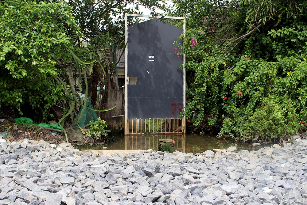 Người dân phải đổ đá to để chắn ngang "dòng suối"...