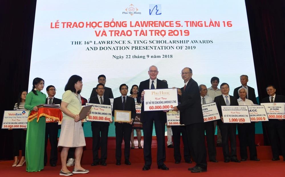 Ngày 22-9, tại quận 7 (TP.HCM), Công ty TNHH Phát triển Phú Mỹ Hưng (Phú Mỹ Hưng) thông qua Quỹ Hỗ trợ Cộng đồng Lawrence S. Ting (Quỹ Lawrence S. Ting) tổ chức “Lễ trao học bổng Lawrence S. Ting lần thứ 16 năm 2018 và trao tài trợ năm 2019”. Tổng số tiền trao trong đợt này là hơn 8,39 tỷ đồng, bao gồm học bổng trực tiếp và gián tiếp.