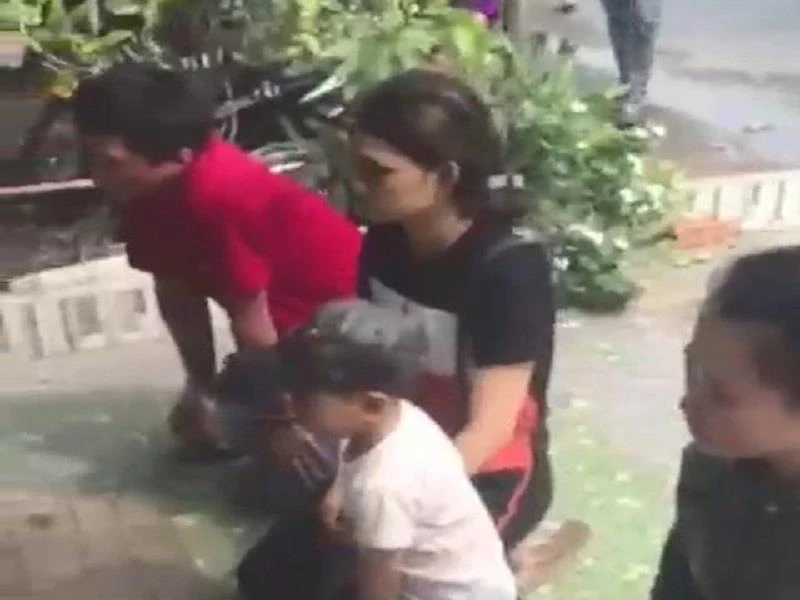 Họ quỳ gối khoảng 30 phút lạy xin bà chủ tịch cho lại đứa con. Ảnh cắt từ clip