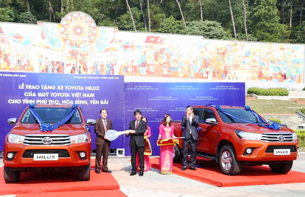 Chính vì vậy, TVF lại tiếp tục kết hợp với Ủy ban ATGT QG bắt đầu triển khai chương trình “Trao tặng xe Toyota Hilux” với mục đích hỗ trợ phương tiện tuần tra giao thông nhằm tăng cường công tác thanh tra, kiểm tra giao thông, đóng góp tích cực trong việc cải thiện tình hình an toàn giao thông trên các tuyến đường huyết mạch cũng như góp phần giảm tai nạn giao thông tại ba tỉnh Phú Thọ, Hòa Bình và Yên Bái, đây là những địa phương đầu tiên của chương trình này.
