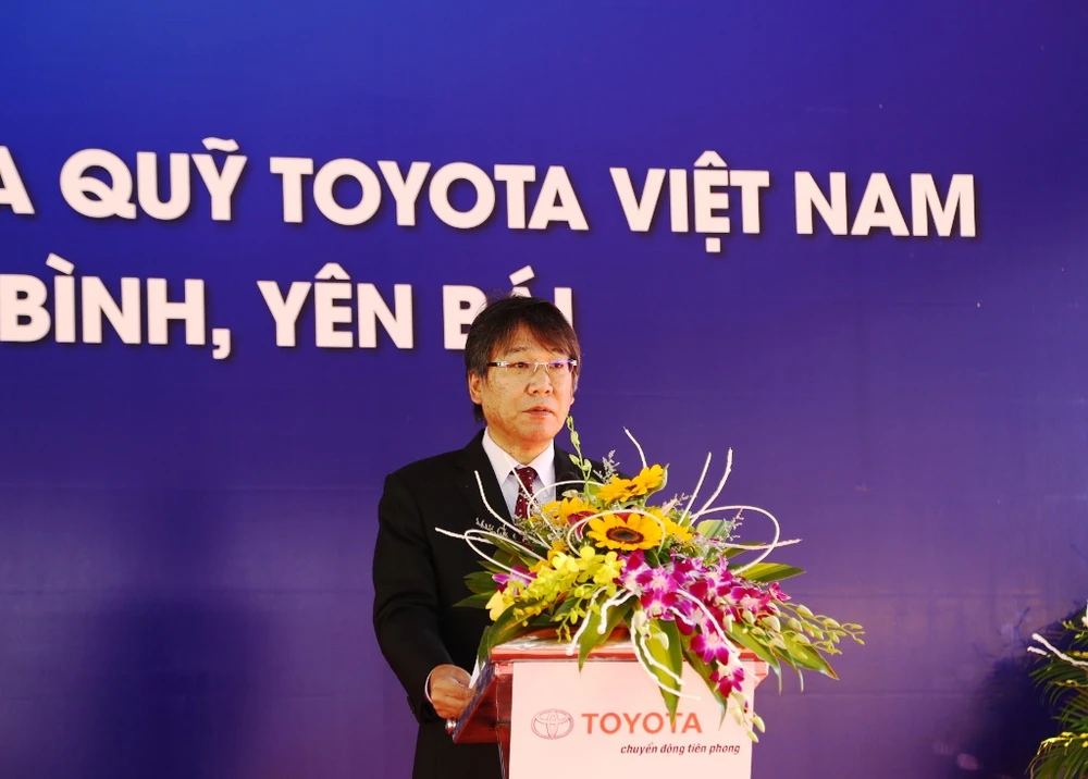 Ông Yoshihisa Maruta - Chủ tịch Quỹ Toyota Việt Nam, Tổng Giám đốc Toyota Việt Nam phát biểu tại lễ trao tặng xe Hilux