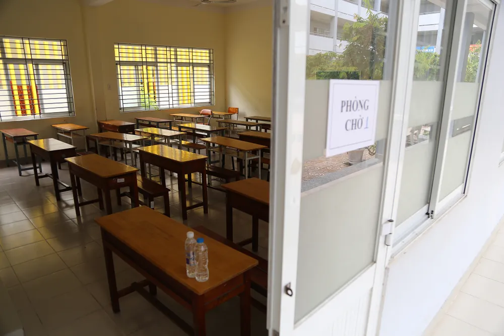 Một phòng chờ được sử dụng trong trường hợp thí sinh có thân nhiệt quá cao sẽ được ngồi tại đây nghỉ ngơi và đo thân nhiệt nhiều lần. Nếu nhiệt độ vẫn không giảm sẽ được chuyển qua thi ở phòng cách ly của điểm thi.