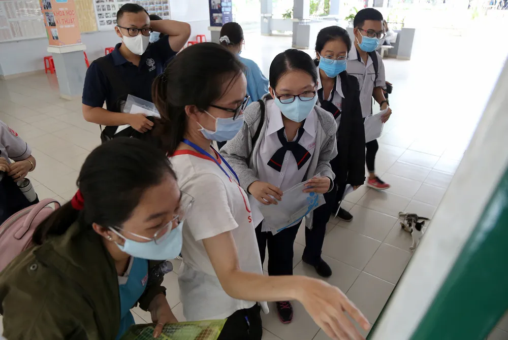 Chiều 8-8, hơn 850.000 thí sinh trên cả nước đến điểm thi để làm thủ tục tham dự kỳ thi tốt nghiệp THPT năm 2020. Đây là kỳ thi đặc biệt khi diễn ra trong bối cảnh dịch COVID-19 đang diễn biến phức tạp. Tại điểm thi THPT Gia Định (quận Bình Thạnh, TP.HCM), các thí sinh đến làm thủ tục phải trải qua quy trình kiểm tra y tế, sát khuẩn nghiêm ngặt.