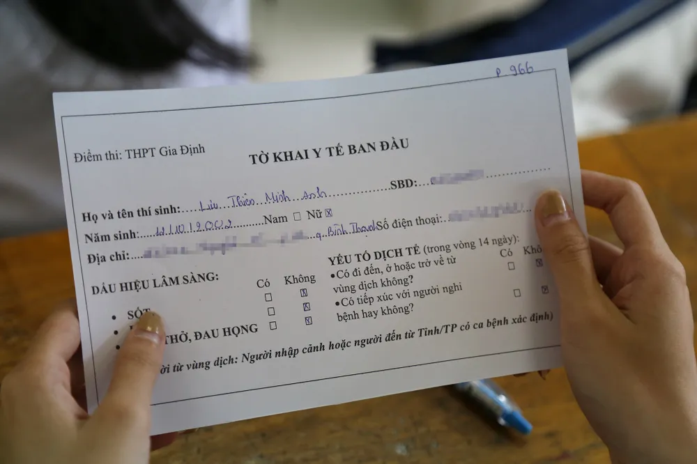 Tờ khai y tế sẽ được giám thị thu lại và cuối giờ chiều điểm thi sẽ thống kê lại để đề phòng các trường hợp có biểu hiện sốt hoặc đi từ vùng có dịch về.