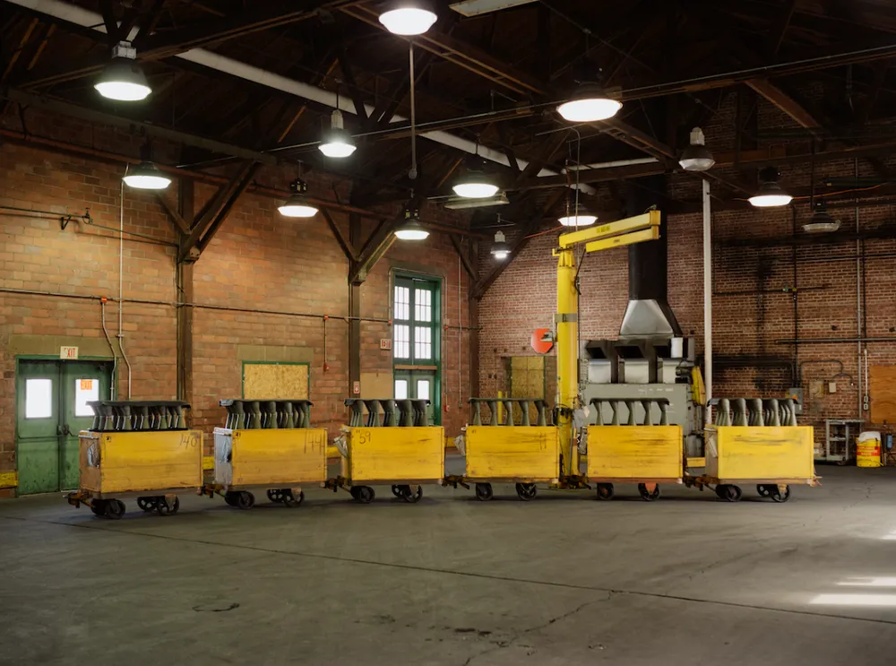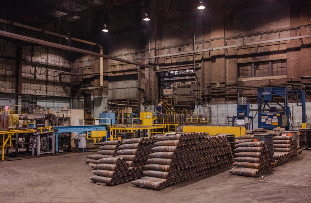 Trên sàn nhà máy, không gian được dọn dẹp, chừa chỗ cho máy móc mới để nhà máy Scranton có thể sản xuất nhiều vỏ đạn hơn nữa cho Ukraine.