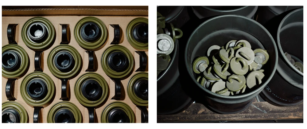 Trong dây chuyền lắp ráp cuối cùng, các công nhân làm sạch các ren ở mũi vỏ đạn, chèn một lớp lót bằng nhựa và cho vào một khối thuốc nổ nhỏ được bọc trong giấy bạc gọi là liều bổ sung.