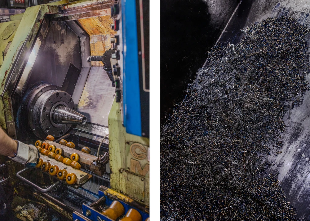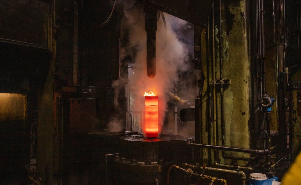 Thép được đưa đến nhà máy ở dạng thanh dài khoảng 6 m, mỗi thanh nặng khoảng 907 kg. Ở trong xưởng rèn, cưa tự động sẽ thành những mảnh phôi thép chỉ dài hơn 0,3 m.