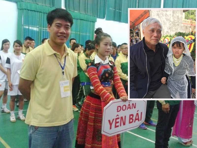 Trọng tài Dương Ngọc Tân lúc còn tham gia đoàn thể thao Yên Bái (ảnh lớn) và bố vợ cùng con gái của anh trong lễ tang. Ảnh: TTVH