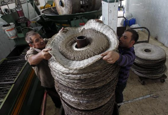 Trước tiên, quả ô liu được nghiền nhỏ bằng cối xay lớn.