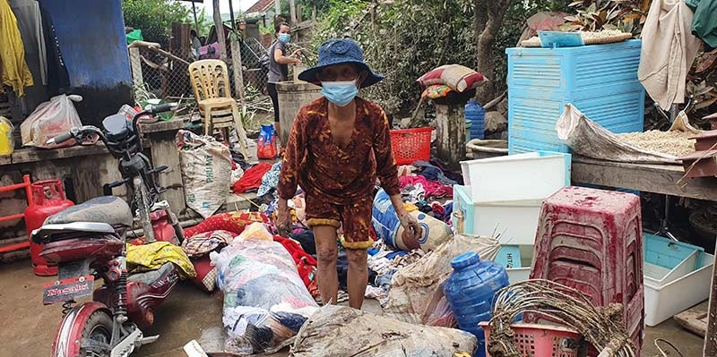 Người dân xã Sơn Hà, huyện Sơn Hòa, tỉnh Phú Yên nhặt nhạnh tài sản hư nát sau khi lũ rút. Ảnh: TẤN LỘC