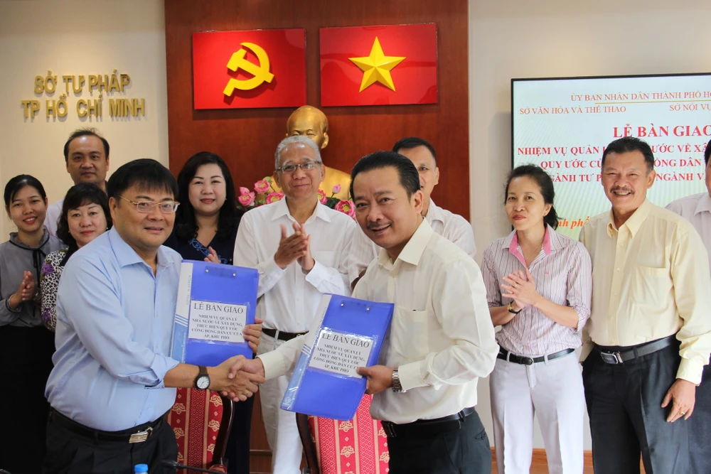 Phát biểu tại buổi lễ nhận bàn giao, ông Võ Trọng Nam, Phó Giám đốc Sở Văn hóa-Thể thao TP, ghi nhận những thành quả mà Sở Tư pháp đã thực hiện về hương ước, quy ước tạo hiệu ứng trong thời gian dài. Sở xin nhận nhiệm vụ để thực hiện theo chỉ đạo của UBND TP và mong muốn Sở tiếp tục hỗ trợ về thủ tục, hệ thống quản lý mà Sở đã thực hiện từ quận-huyện, phường-xã, khu phố -ấp…