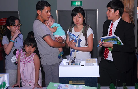 Người dân đang giao dịch tại một sàn bất động sản ở TP.HCM. Ảnh: HTD