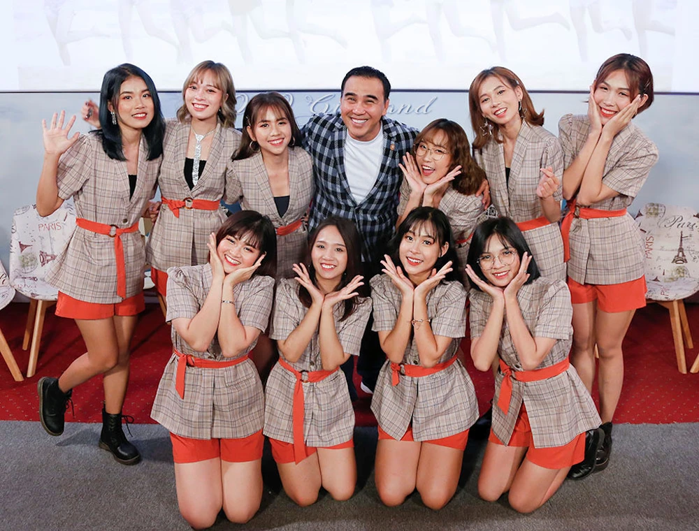 Nghệ sĩ Quyền Linh và các thành viên O2O Girl Band. Ảnh: MCV