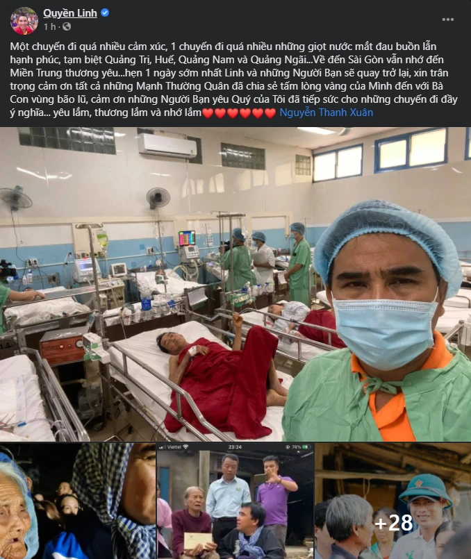 Sau khi trở về từ miền Trung, MC Quyền Linh đã có những xúc động khó tả khi hỗ trợ người dân tại đây.