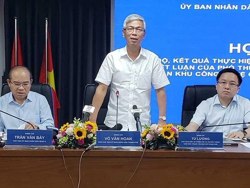 Chiều 6-8, Phó Chủ tịch UBND TP.HCM Võ Văn Hoan chủ trì cuộc họp báo về “Thông báo tiến độ và kết quả thực hiện kết luận của Thanh tra Chính phủ liên quan đến dự án Khu công nghệ (KCN) cao, quận 9”.
