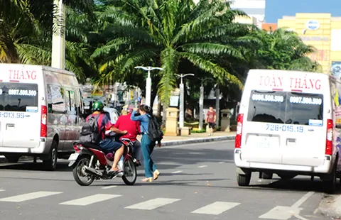 Chiều 21-8, PV ghi nhận được hơn một chục chiếc xe khách của hai hãng Hoa Mai, Toàn Thắng “tập kết” tại khu vực Công viên Trưng Trắc - Trưng Nhị. Hầu hết là loại xe 16 chỗ, chạy tuyến Vũng Tàu - TP.HCM. Theo ghi nhận, cứ khoảng 5-10 phút là có một chiếc xe chạy đến dừng trước văn phòng của hai hãng xe này để nhận lệnh đón khách. Có lúc ba, bốn chiếc xe/hãng cùng cập vào, chiếm gần hết phân nửa đường Trưng Nhị. Nhiều hành khách khệ nệ valy, túi xách băng qua đường để lên xe càng khiến việc đi lại của người dân trong khu vực thêm khó khăn.