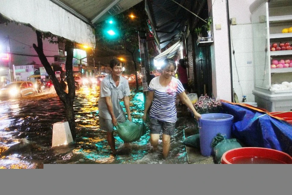 Người dân TP.HCM chống ngập mỗi khi có mưa . Ảnh: NT