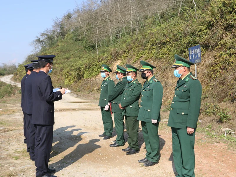 Đoàn đại biểu đồn biên phòng cửa khẩu Việt Nam trao đổi công tác phòng, chống dịch bệnh COVID-19 với đoàn đại biểu biên phòng xuất nhập cảnh Trung Quốc. Ảnh: KIM NHƯỢNG