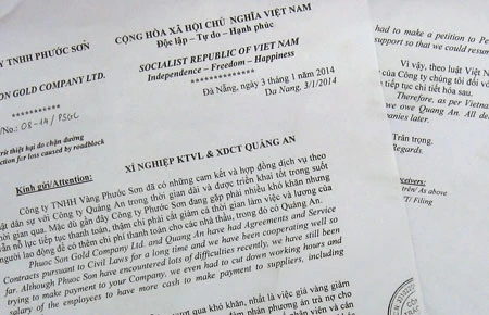 Văn bản do Tổng Giám đốc Paul Seton ký nêu rõ: Trong lúc Phước Sơn đang tiếp tục đàm phán phương án trả nợ, trong đó có Quảng An thì vừa qua một số nhân viên và cán bộ Công ty Quảng An đã trực tiếp chặn đường và khuyến khích những người khác cùng chặn đường, dẫn đến việc dừng sản xuất tại mỏ vàng Phước Sơn… Vụ chặn đường và thời gian để công ty phục hồi sản xuất lại bình thường đã gây ra thiệt hại sản xuất ước tính là 850.000 USD (gần 18 tỉ đồng - PV)… Vì vậy, Phước Sơn sẽ khấu trừ khoản thiệt hại này vào khoản nợ của công ty chúng tôi đối với Quảng An. Mọi tính toán cụ thể hơn sẽ được kế toán hai bên tiếp tục chi tiết hóa sau.