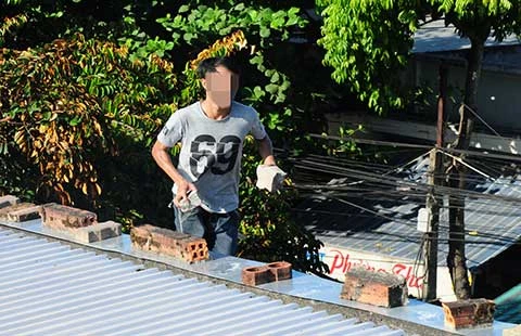 Một thanh niên “ngáo đá” cố thủ trên nóc nhà và vứt gạch xuống đường làm náo loạn khu dân cư. Ảnh: Hiển Cư