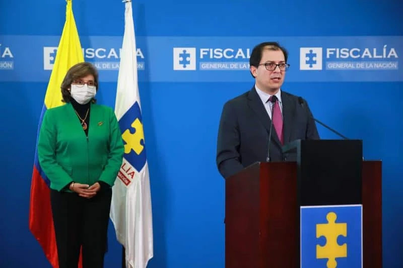 Tổng chưởng lý Colombia Francisco Barbosa (đang đứng trên bục phát biểu). Ảnh: LA PRENSA LATINO