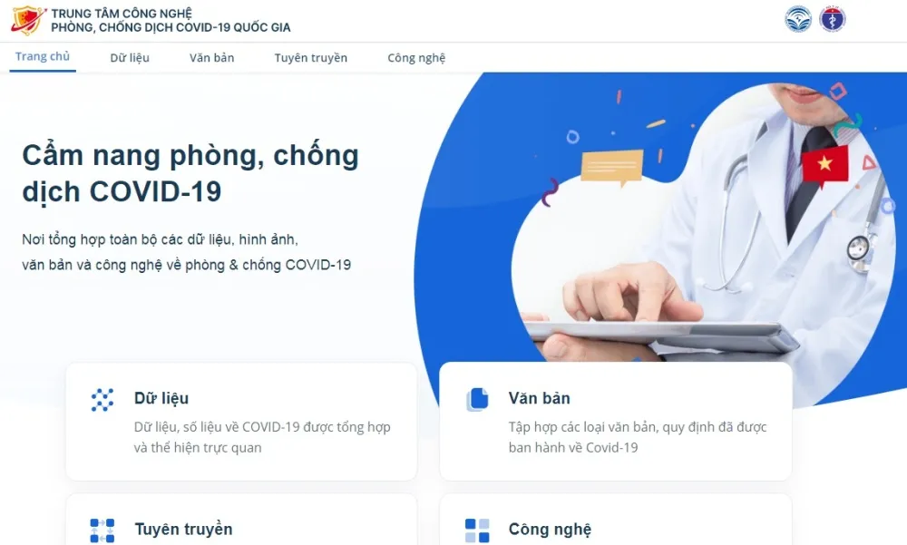 Đây cũng là nơi tổng hợp toàn bộ các dữ liệu, hình ảnh, văn bản và công nghệ về phòng, chống COVID -19, Cẩm nang điện tử này được Bộ TT&TT và Bộ Y tế xây dựng với mong muốn giúp cho mọi cơ quan, tổ chức, doanh nghiệp và cá nhân có thể dễ dàng tra cứu trực tuyến về các biện pháp phòng chống dịch.