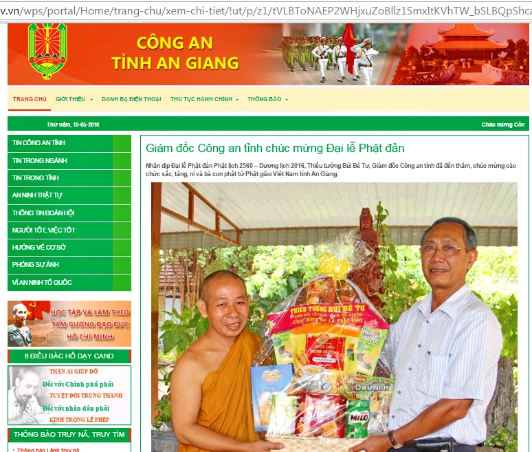 Giao diện Cổng thông tin điện tử Công an An Giang.