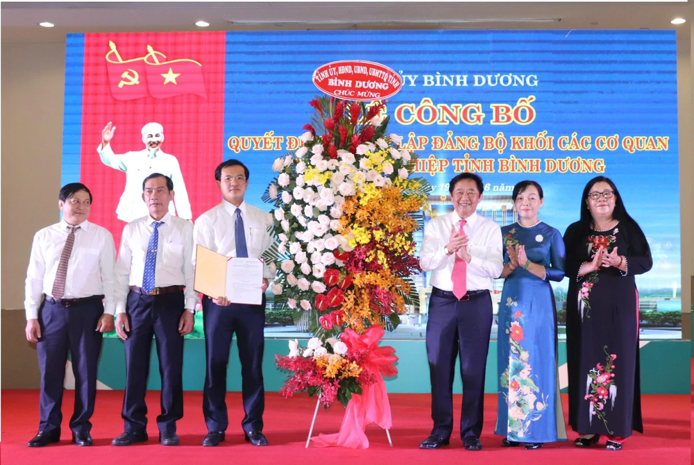 Ngày 19-6, Tỉnh ủy Bình Dương tổ chức lễ công bố quyết định thành lập Đảng bộ khối Các cơ quan và Doanh nghiệp tỉnh Bình Dương trên cơ sở hợp nhất hai Đảng bộ khối Các cơ quan tỉnh và Đảng bộ khối Doanh nghiệp tỉnh.
