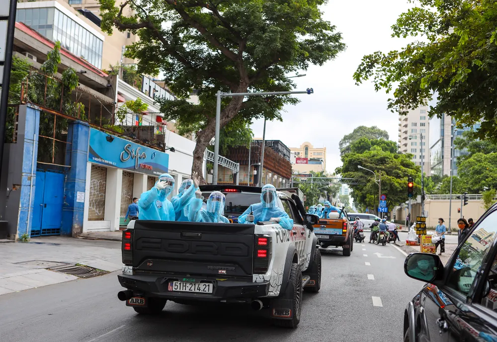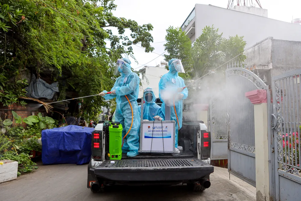 Đây là hoạt động của tuổi trẻ Thành Đoàn TP.HCM góp sức cùng Thành phố trong việc phòng chống dịch. Ông Trần Đức Sự - Phó Giám đốc Trung tâm Phát triển Khoa học và Công nghệ Trẻ – Thành đoàn TP.HCM cho biết: Hiện tại có 75 xe bán tải được huy động sử dụng cho việc phun xịt, những xe này sẽ đi đến những khu vực bị phong tỏa, các trường học, khu vực cách ly để phun khử khuẩn. Trên mỗi xe đều được trang bị máy phun khử, thiết bị bảo hộ phòng dịch bảo đảm 5K.