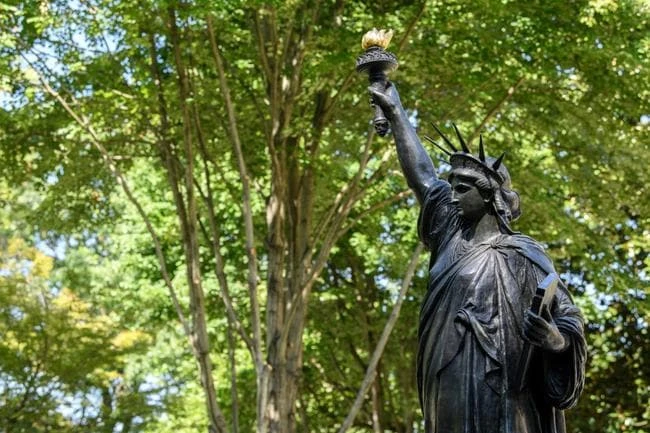 Bức tượng "Nữ thần Tự do" phiên bản nhỏ tại tư dinh Đại sứ Pháp ở Mỹ. Ảnh: AFP
