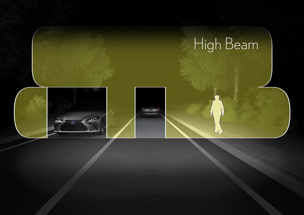 Thêm một cải tiến về an toàn mới được bổ sung trong ES là hệ thống đèn pha thích ứng hai giai đoạn (AHS). Không chỉ tự động bật/tắt đèn pha giúp người lái, dải đèn LED 24 chiếc riêng biệt còn có khả năng điều chỉnh kiểu tia chiếu sáng giúp tăng độ sáng đồng thời giảm độ lóa đối với các xe ngược chiều.