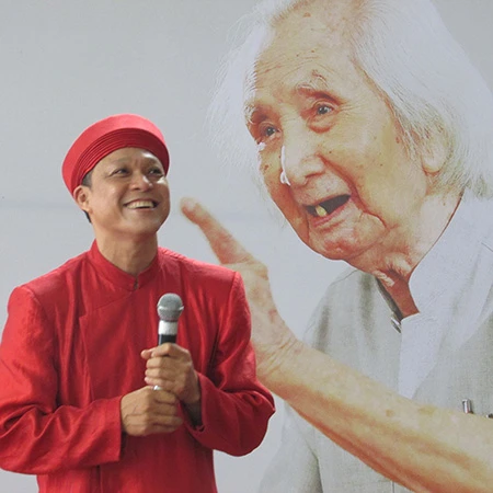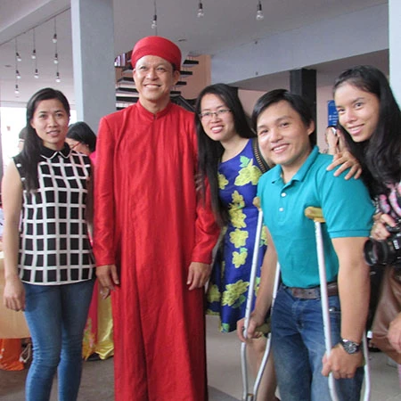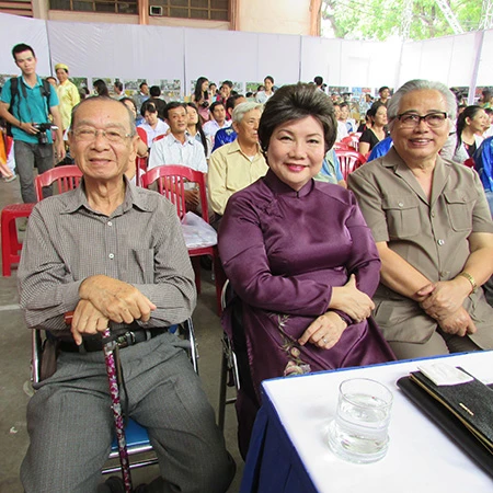 Từ trái sang: NSND Đinh Bằng Phi, vợ chồng giáo sư Nguyễn Khắc Thuần có mặt trong buổi lễ